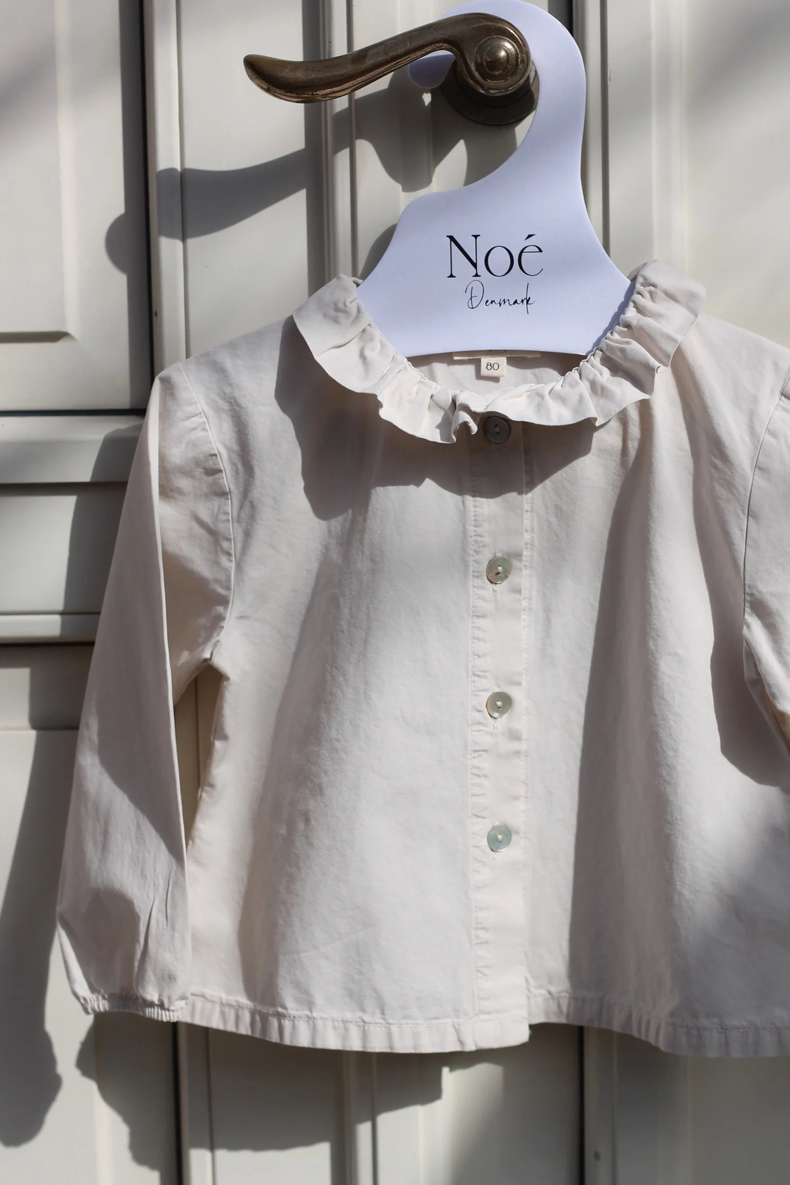 Fin lille skjorte til de mindste. Skjorten har en klassisk flæsekrave og elegante perlemorsknapper. Fremstillet i en super let og blød kvalitet, i 100% økologisk bomuld